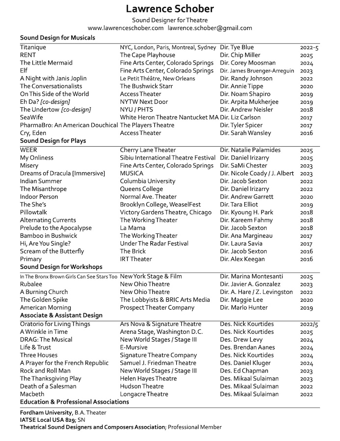 Lawrence Schober | theater sound designer